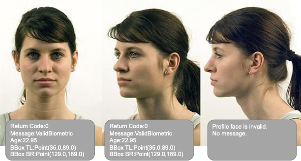 The estimate_age method analyzes a frontal facial image to determine if a valid biometric match is present